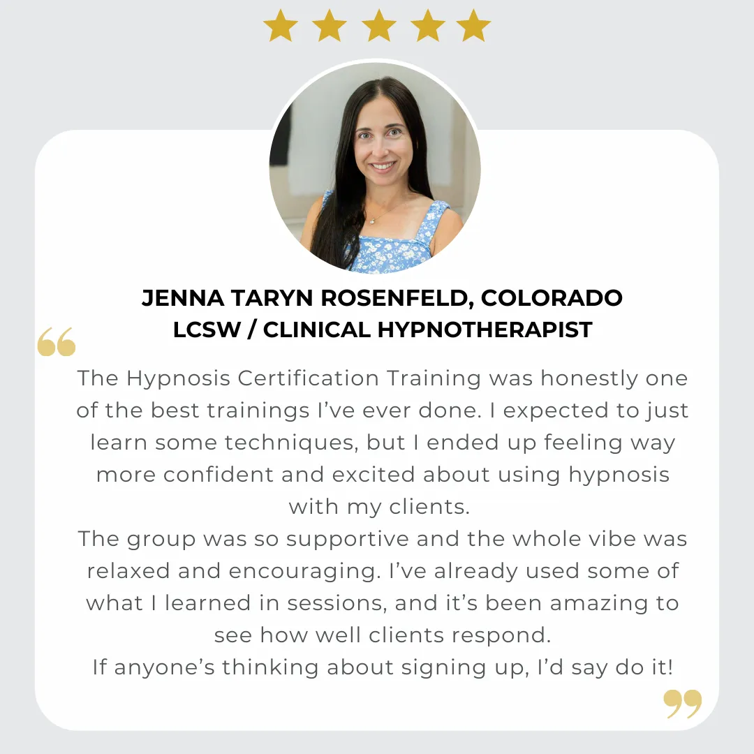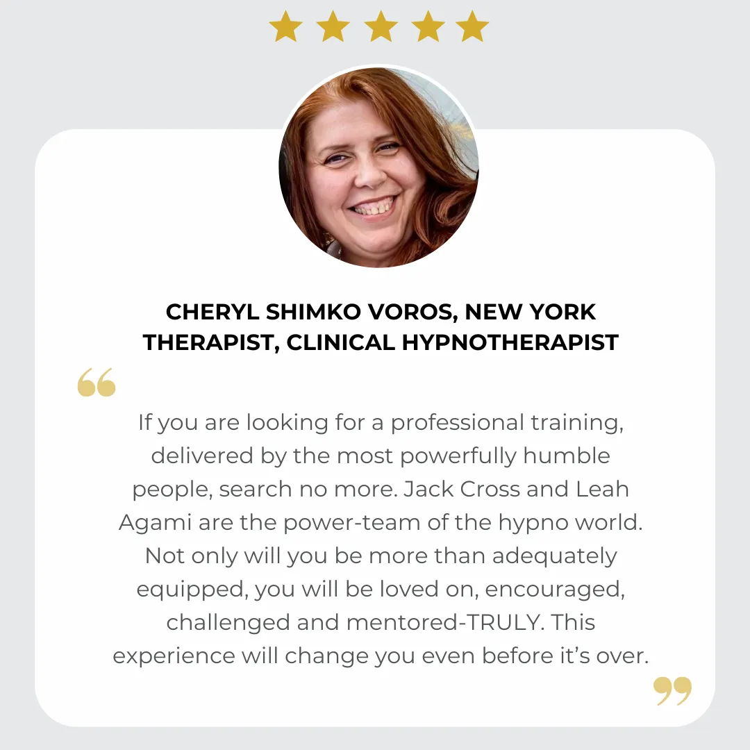 Upon successful completion of this training, you’ll earn professional certification through the International Certification Board of Clinical Hypnotherapists (ICBCH) - one of the most respected and globally recognized hypnosis organizations. This course provides everything you need to meet certification requirements, with hands-on training, expert mentorship, practical experience, and the tools to build or expand a thriving hypnosis practice.