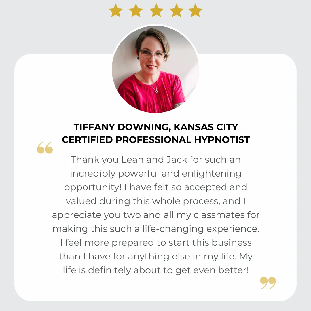 Join us online for 12 days of live instruction, guided hypnosis, daily interaction, and hands-on practice - all inside a private, high-touch Facebook group. Learn from home while staying fully supported and engaged.